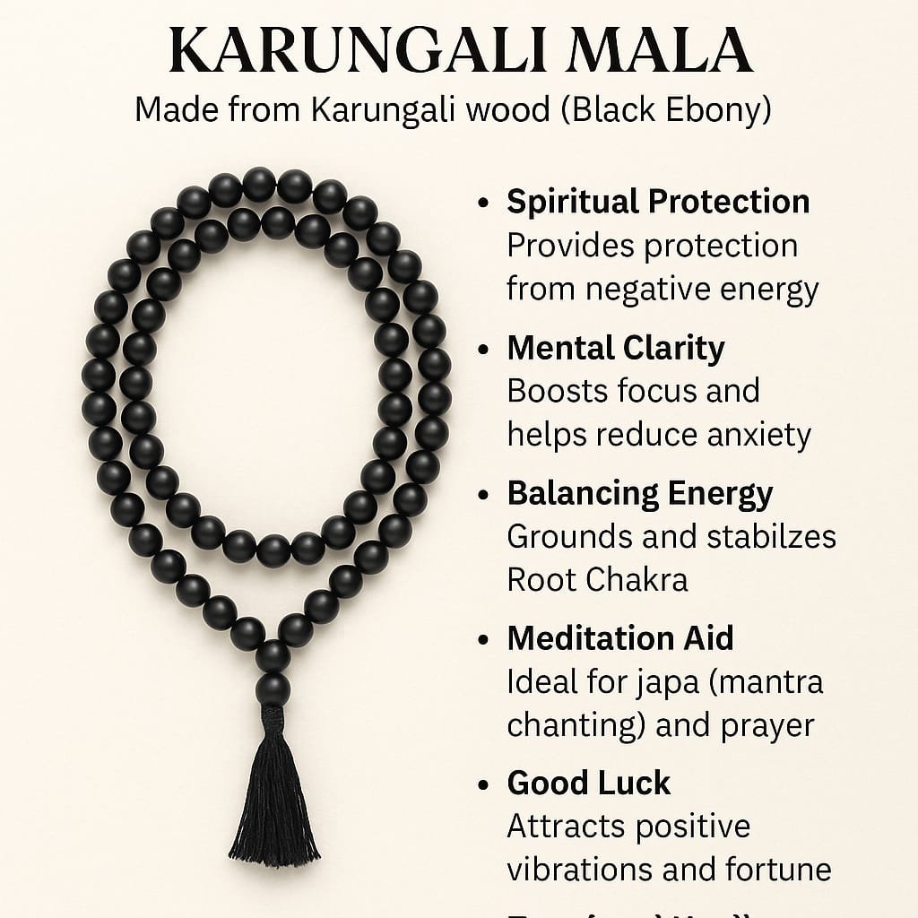 Experience spiritual strength and inner peace with our authentic Karungali Mala, handcrafted from sacred Black Ebony wood. Revered in Tamil traditions and yogic practices, this mala is more than just an ornament—it’s a shield of protection and a symbol of devotion.